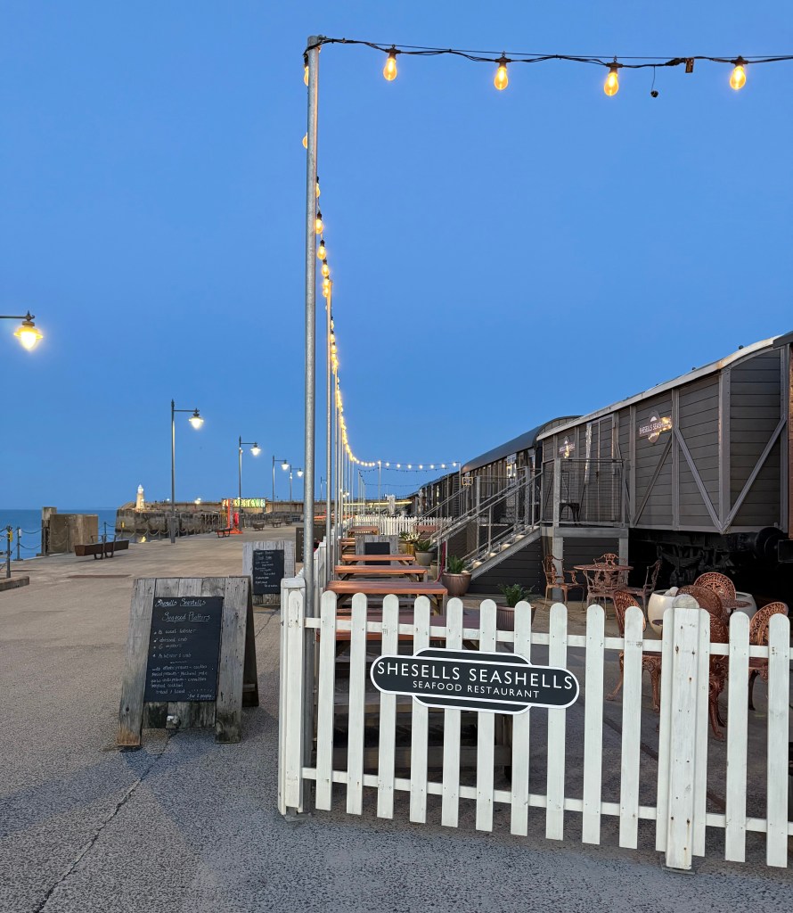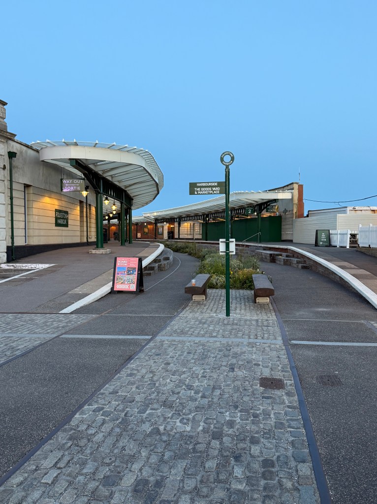 Turning in the opposite direction, you can almost imagine the bustle of long-ago travelers arriving from London. That’s where the trains used to pull in, right up to the edge of the docks. There’s a beautifully restored building there now, repurposed as a coffee house. I think it may have once been the old ticketing booth, what a history it must hold!