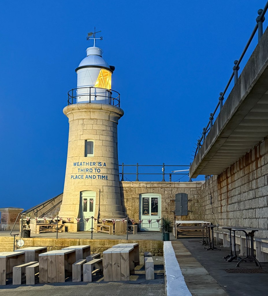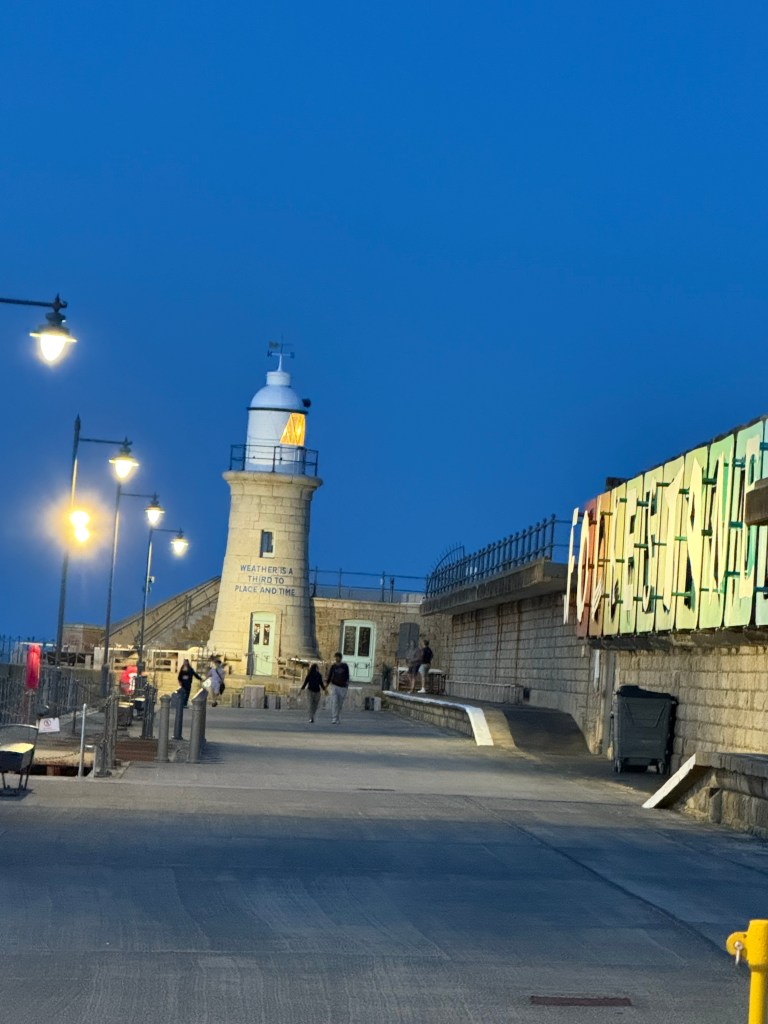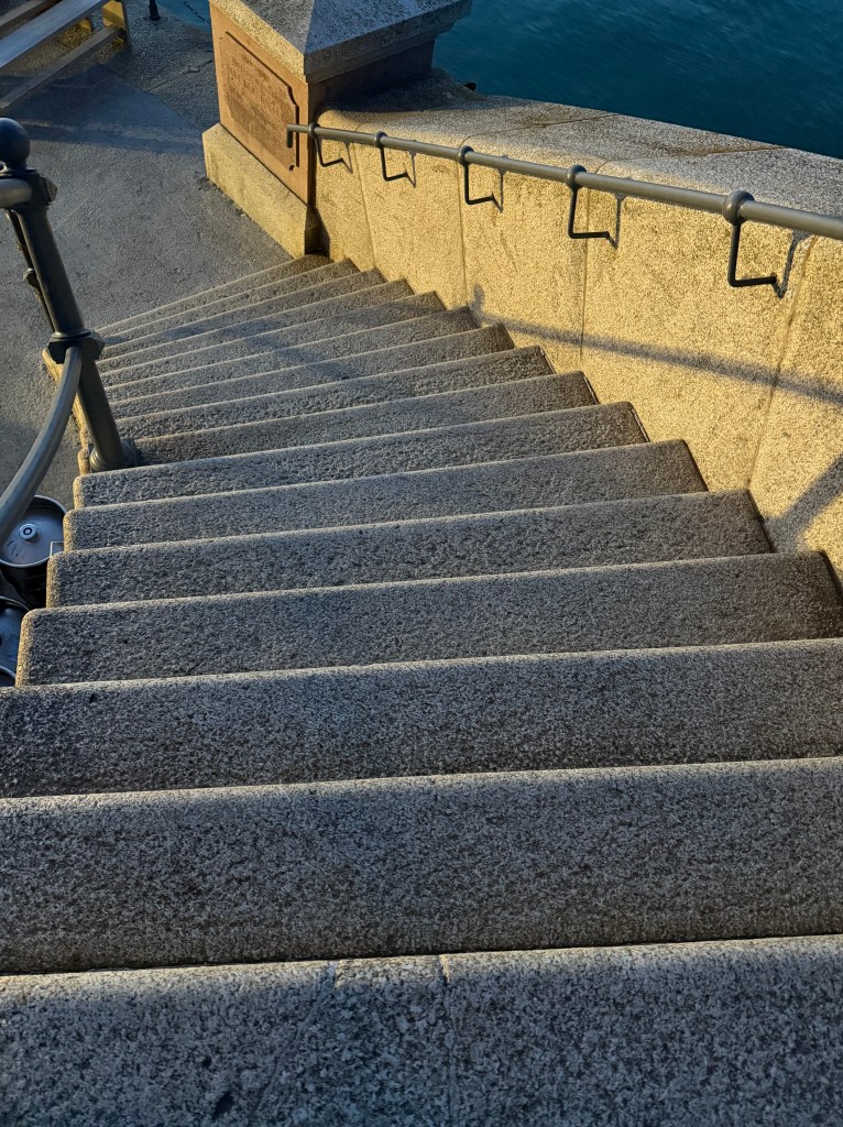 You’ll also spot more harbor views, including a lower walkway that gets completely submerged when the tide rolls back in. While I was wandering down there, I noticed a cutout figure of a man looking out over the ocean, still and reflective, almost like he was standing guard. As the evening wore on, harbor security arrived, ushering me out and closing the gates behind me. That could only mean one thing: the tide was on its way home.