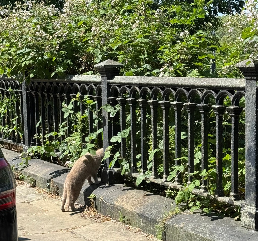 I would have liked to have taken more photos of the larger buildings, but so many of the them were hidden behind overgrown foliage, making it tough to get a clear shot. I did consider using some stock photos, but honestly, if someone really wants to see them, they’re easy enough to find. I did snag a few shots: two of the town’s well-fed cats, a charming little bakery, and a striking red car that caught my eye. ZaZa-Zing!